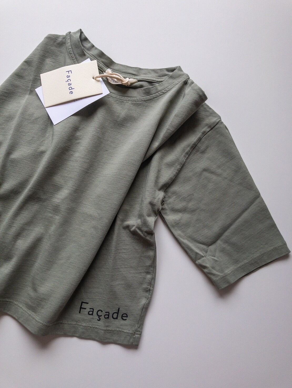 ドロップショルダーのゆったりシルエットのTシャツ。